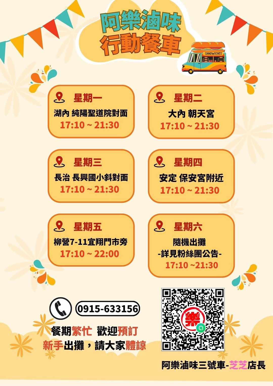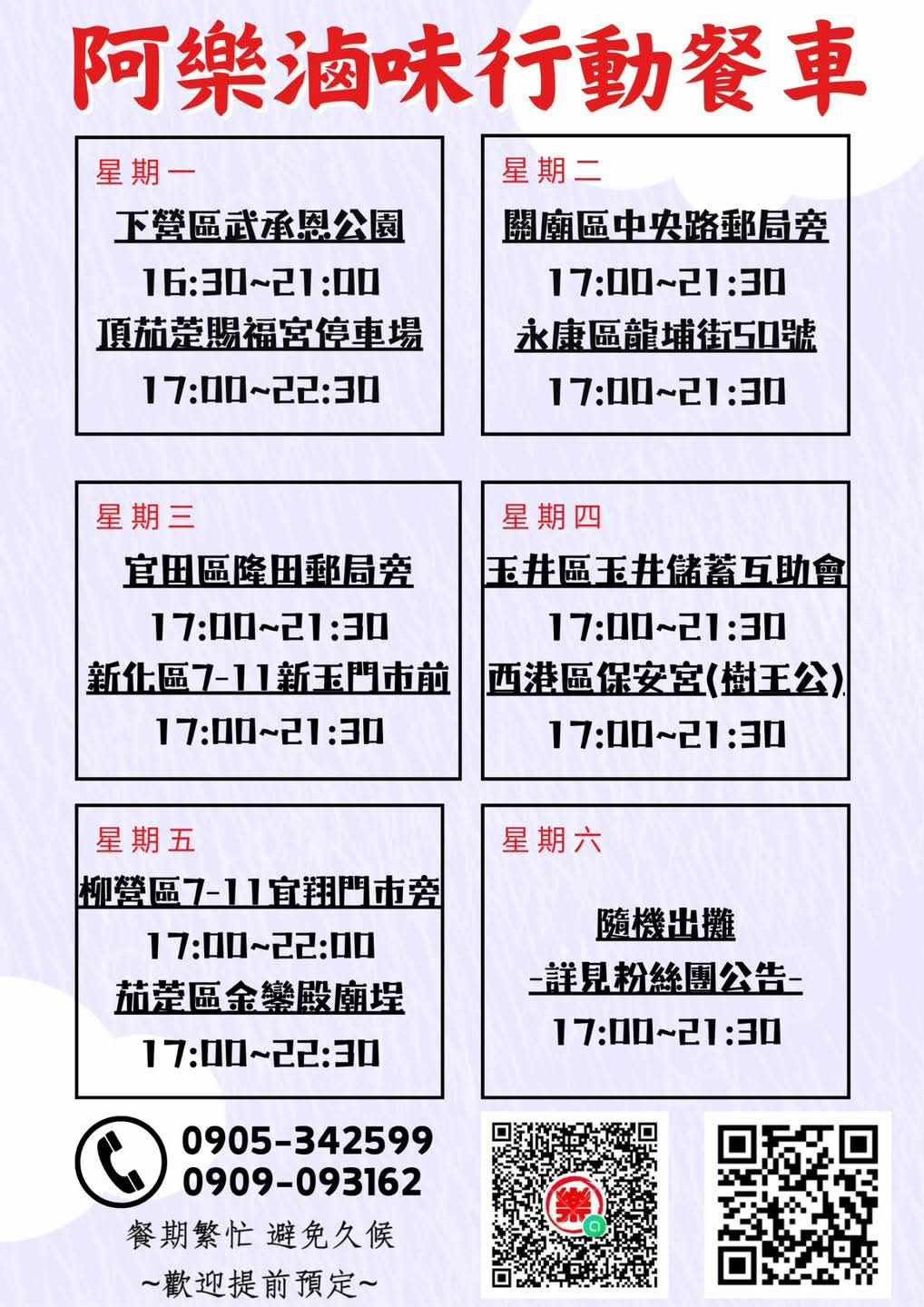 營業時間跟地點請參考《阿樂滷味餐車》粉絲頁