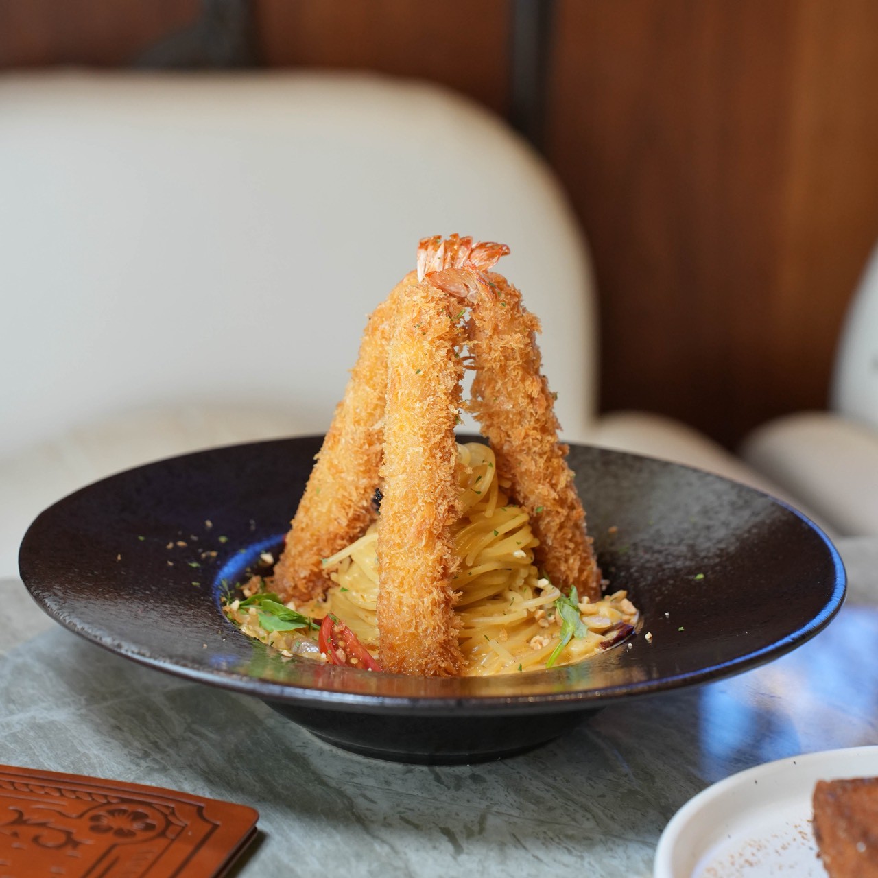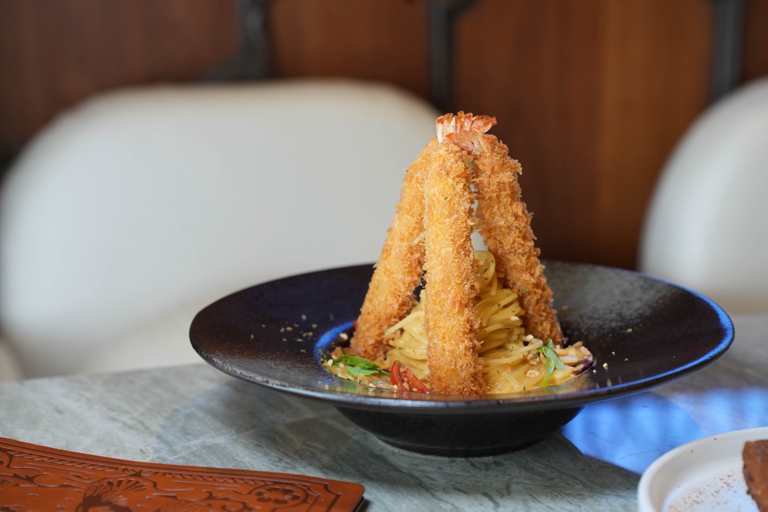 椒香麻奶|黃金海老炸蝦義大利麵