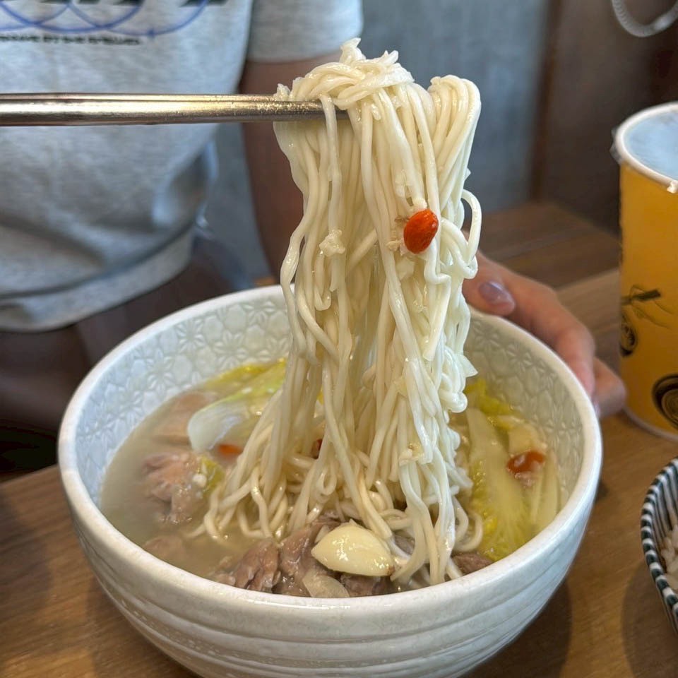 新推出的濃厚蒜頭雞湯麵絕對是溫補系的朋友最愛,雞湯以蒜頭慢火熬煮,香而不嗆,湯頭喝起來溫潤順口,選用去骨黑羽土雞腿肉,雞肉吃起來香嫩多汁,麵條Q彈吸收了湯汁,讓人一口接一口!