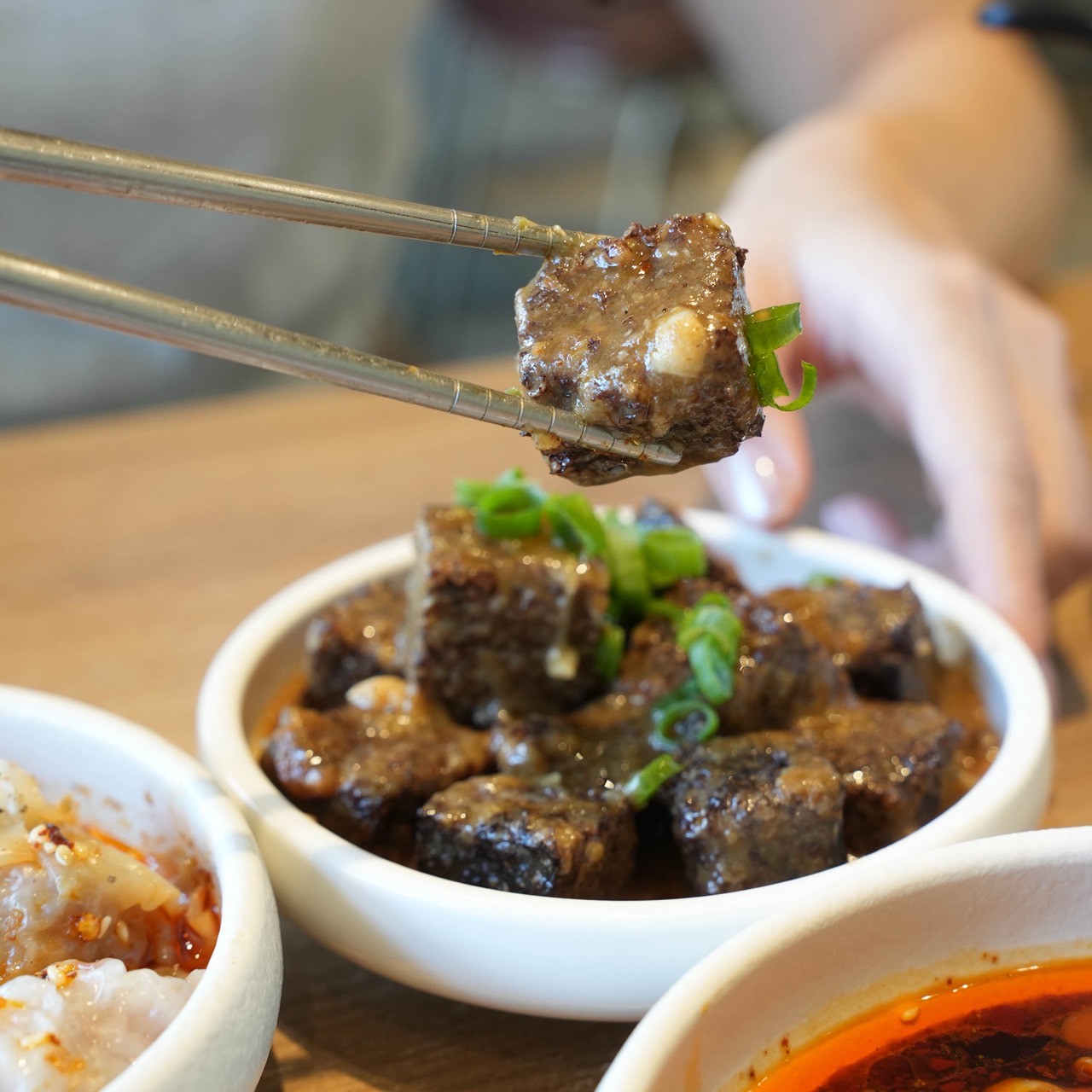 五香豆乾、沙茶米血 $50