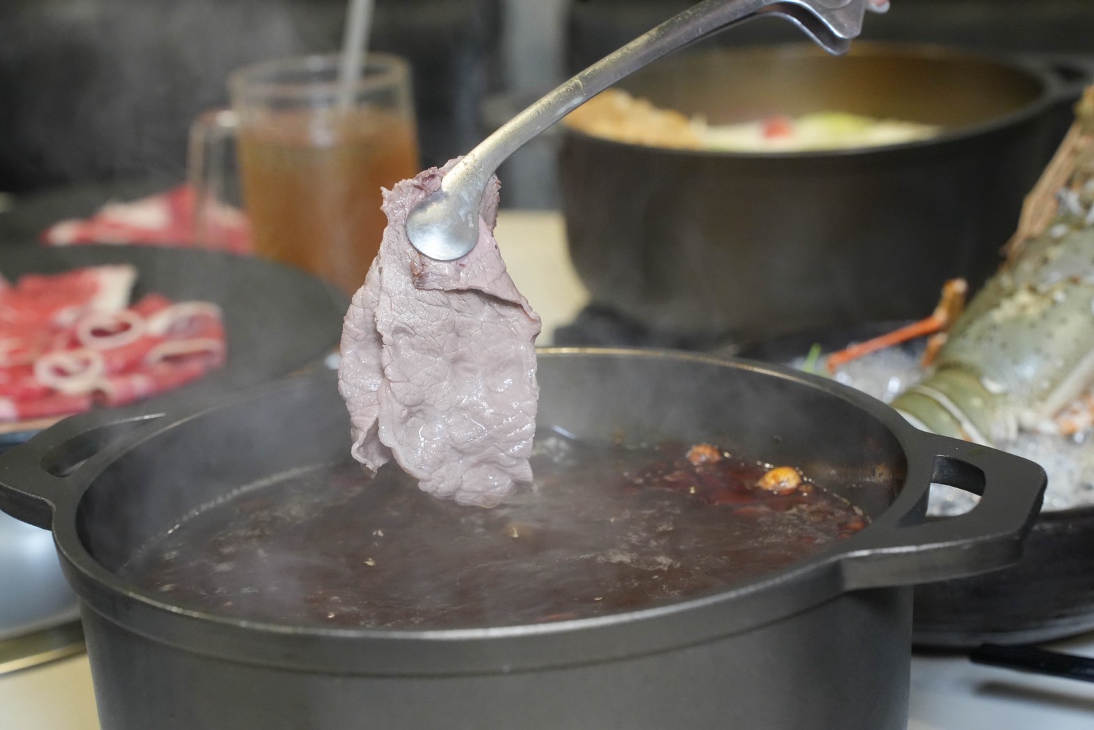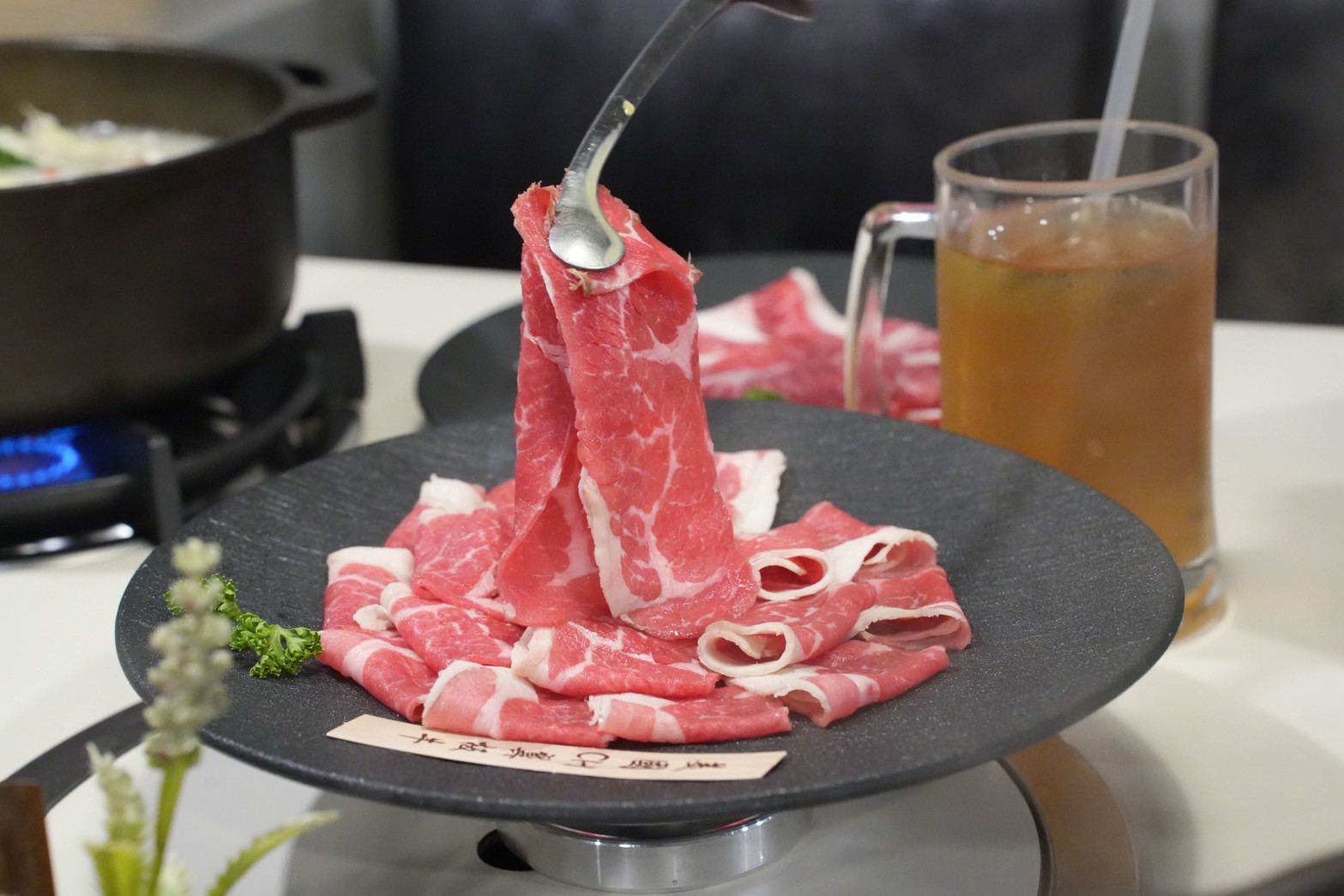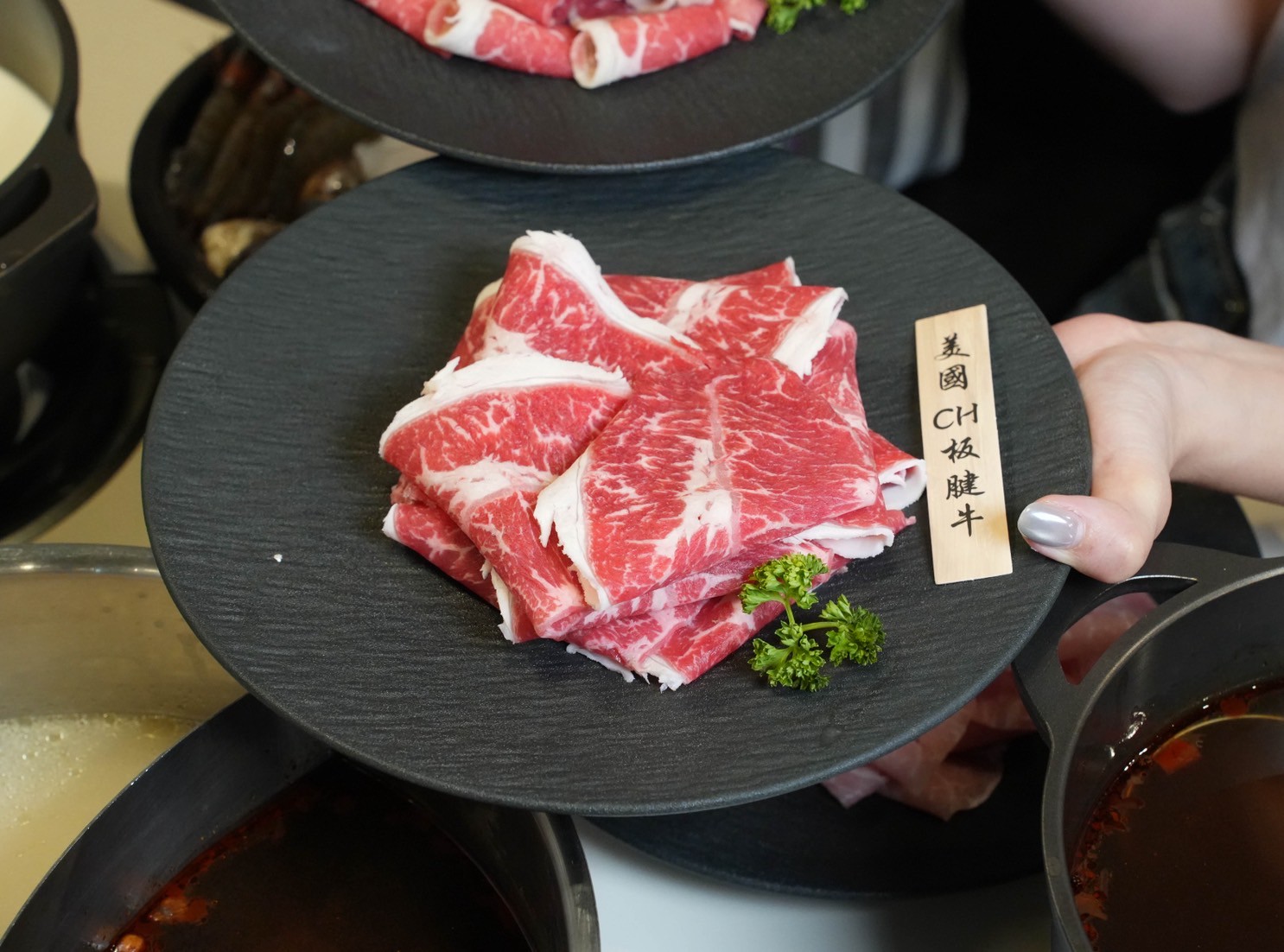 板腱牛下鍋涮個幾下就能入口,咬起來帶點嚼勁,牛肉香氣很濃郁,越嚼越有肉汁跑出來。
