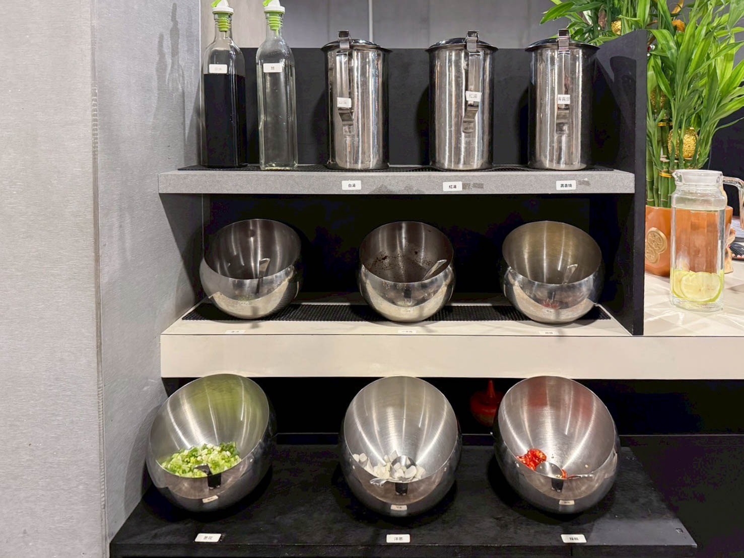 一旁有沾醬及火鍋湯頭~可自行拿取