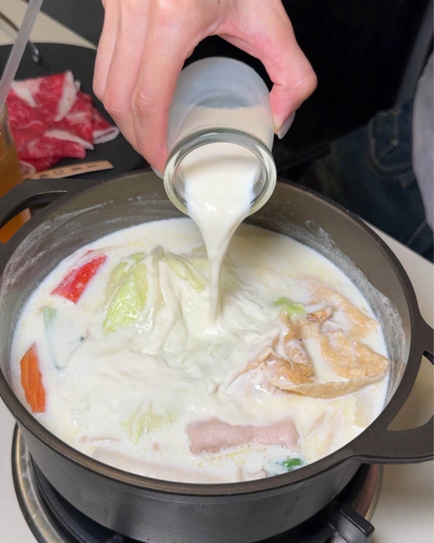 香濃牛奶鍋:奶香濃郁還有另外附一瓶牛奶,還可以一鍋二吃,另外加麻辣湯下去就變成麻奶鍋了!