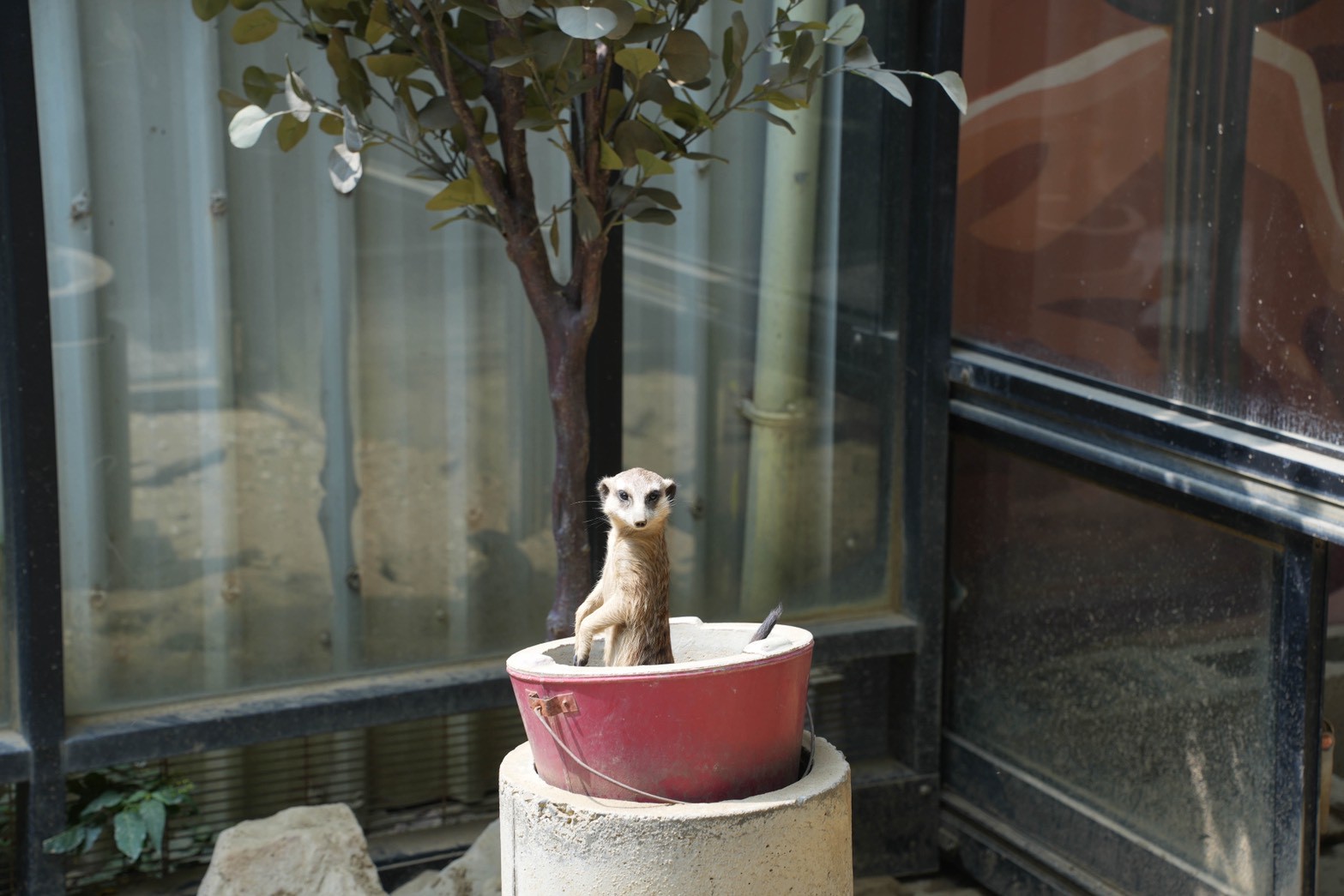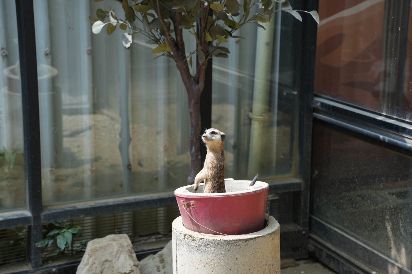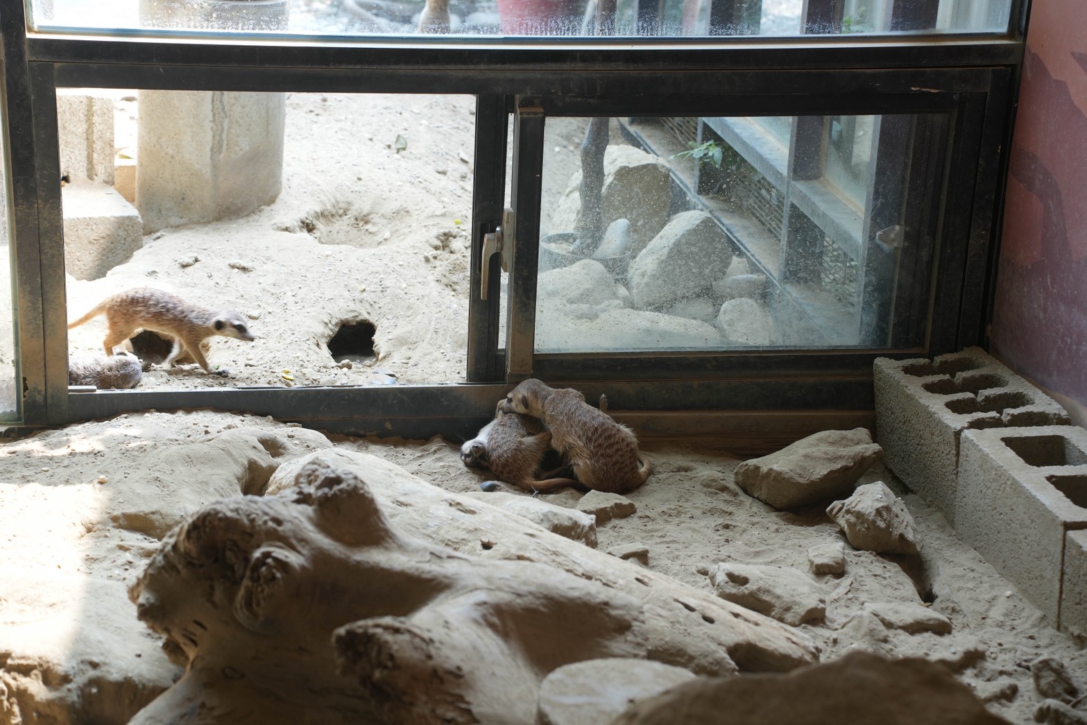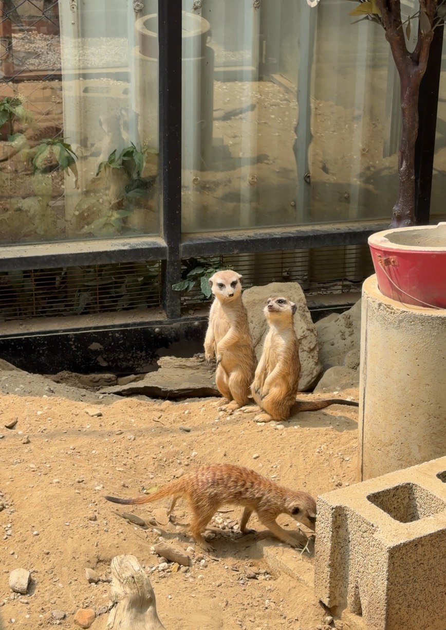這裡最特別的就是狐獴們~~~用餐時可以看到牠們在活動空間裡走來走去,有時站立、有時互相打鬧,超可愛!