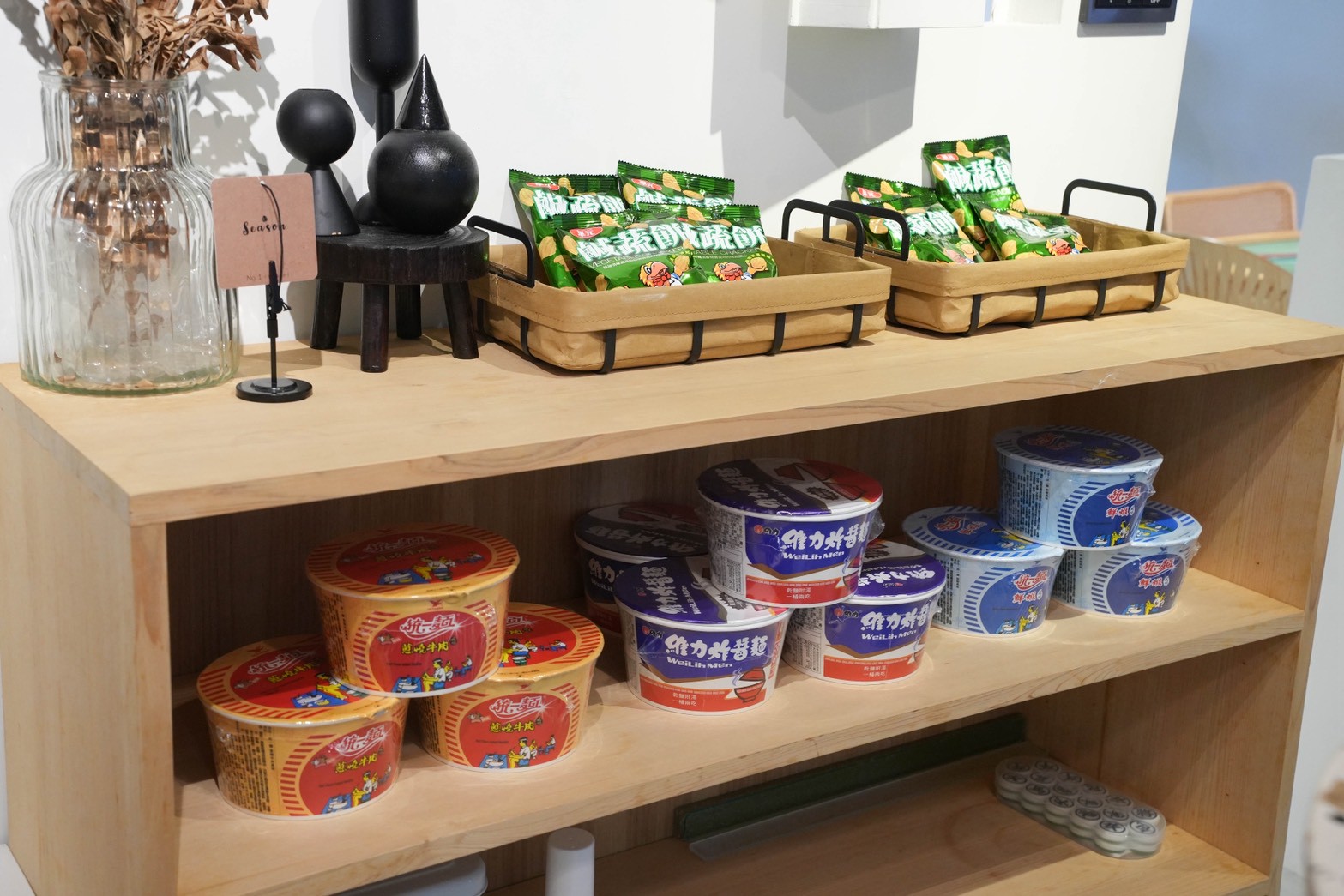 泡麵、餅乾、飲料、星巴克膠囊咖啡通通免費,肚子餓完全不用出門找東西