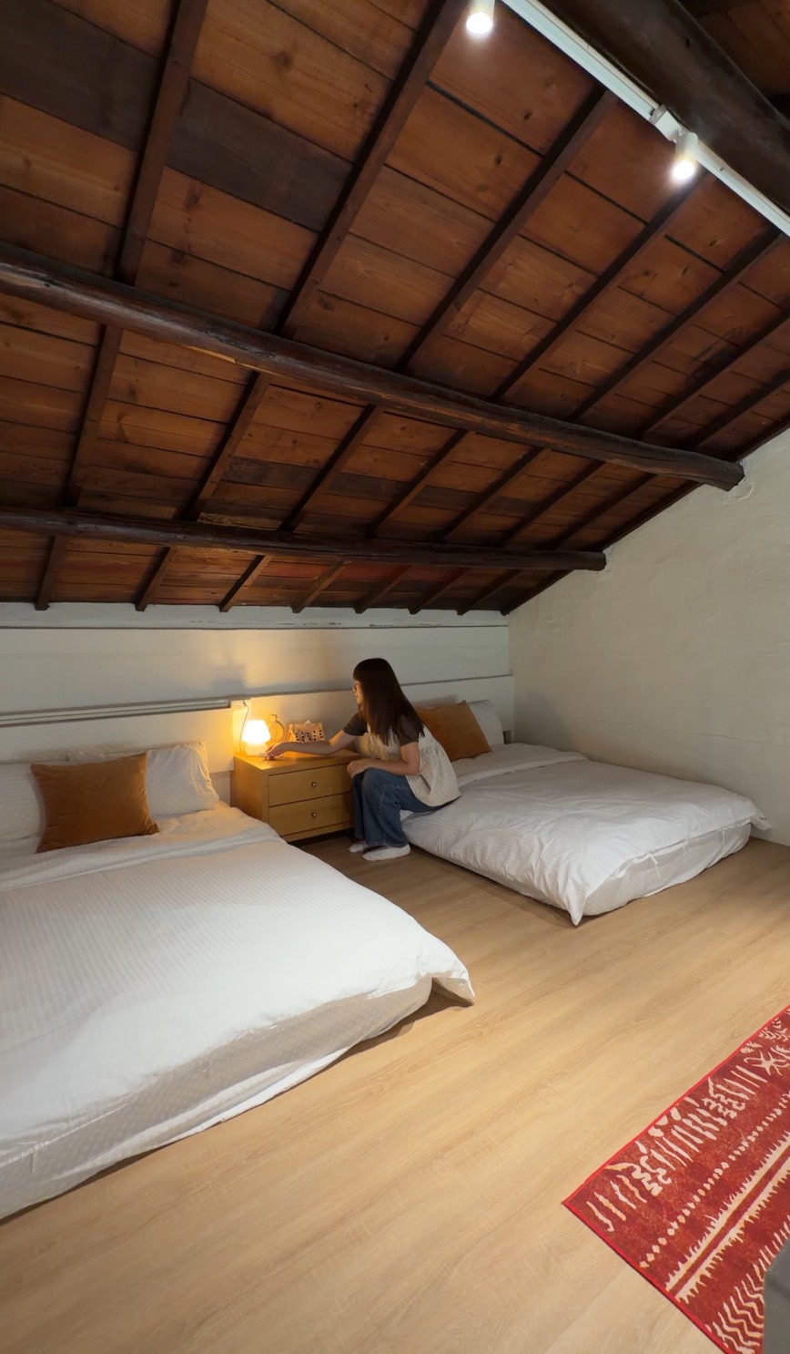 樓中樓的上層則有兩張雙人床,可容納四人入住,雖然是樓中樓,但挑高的設計一點也不壓迫耶~