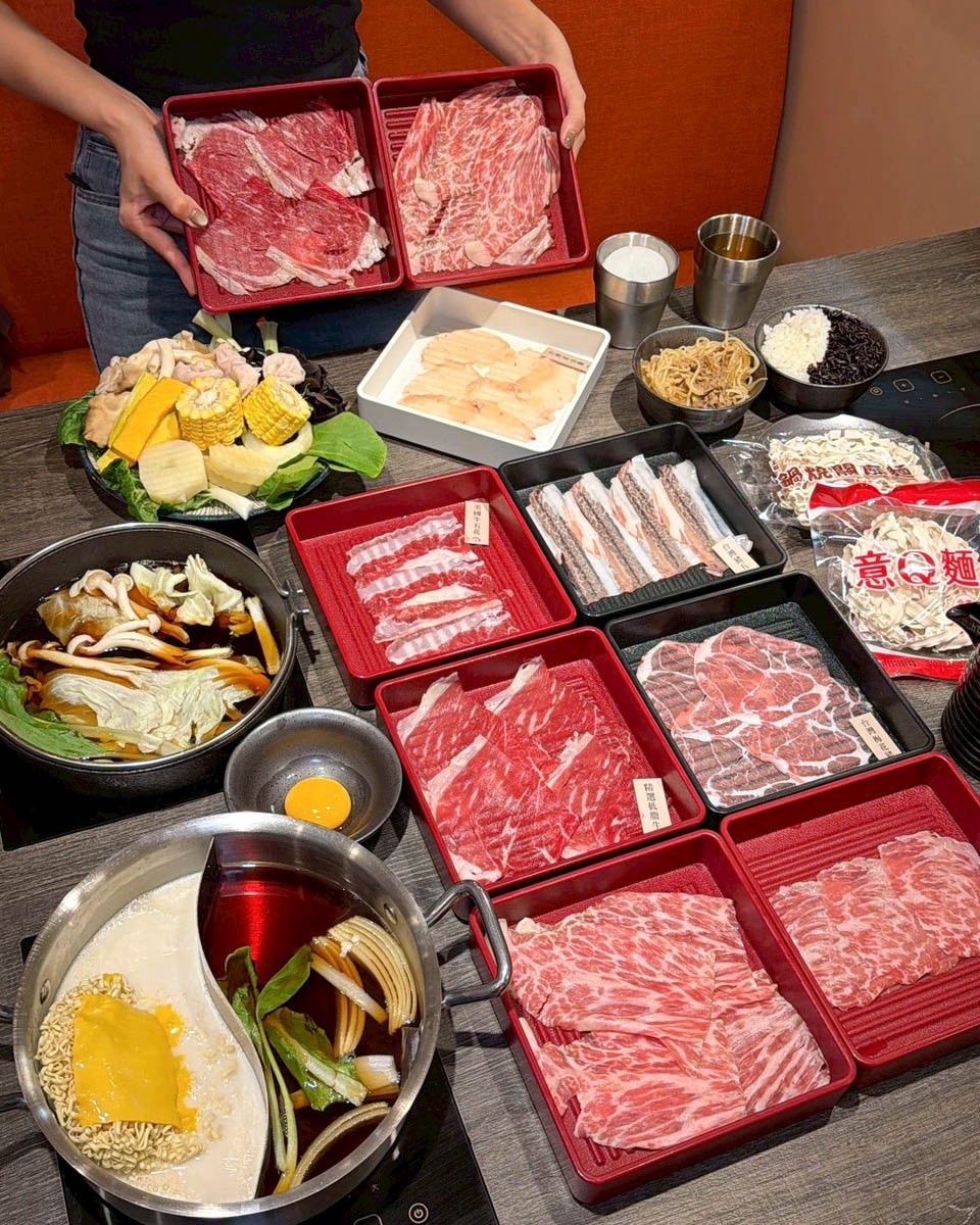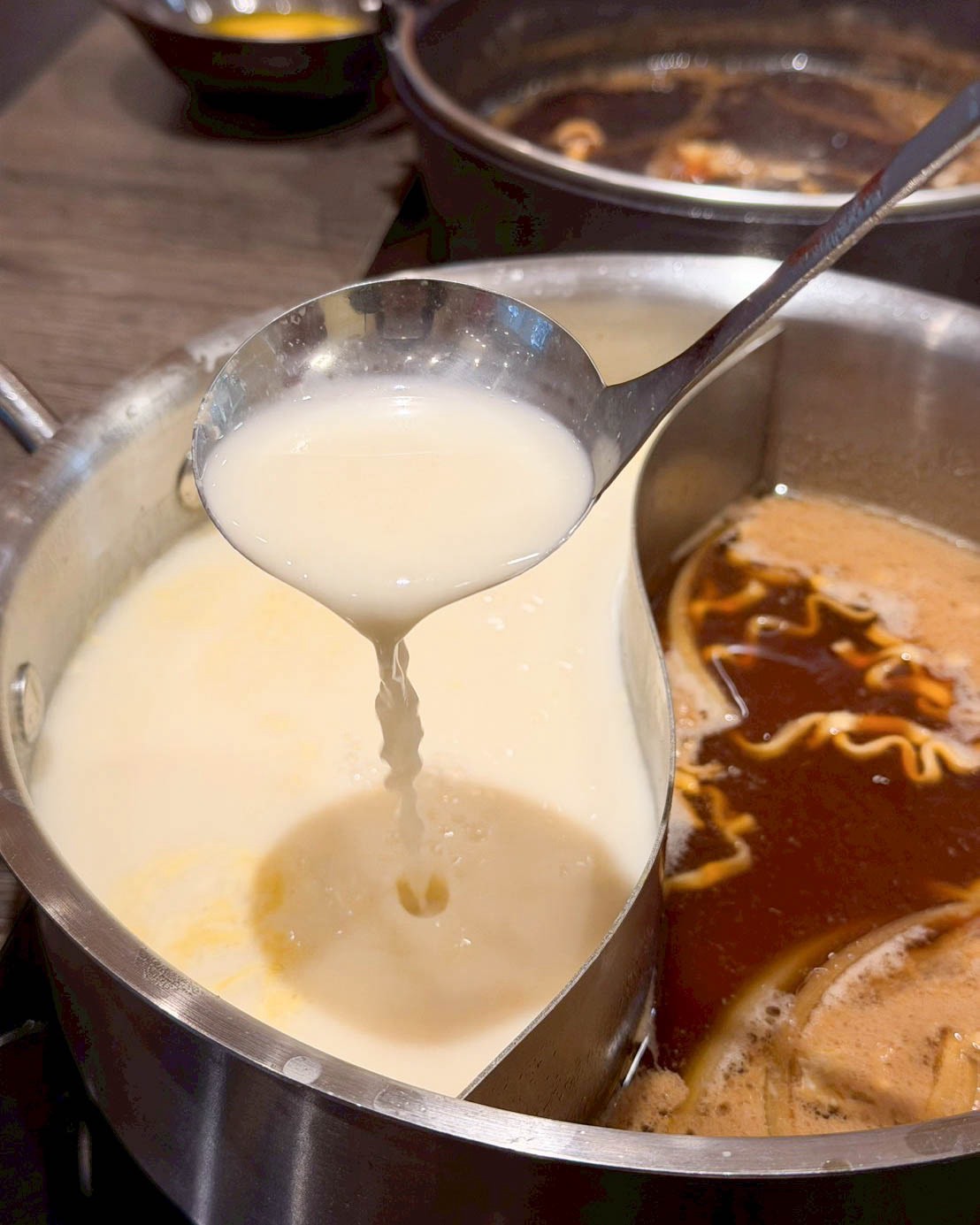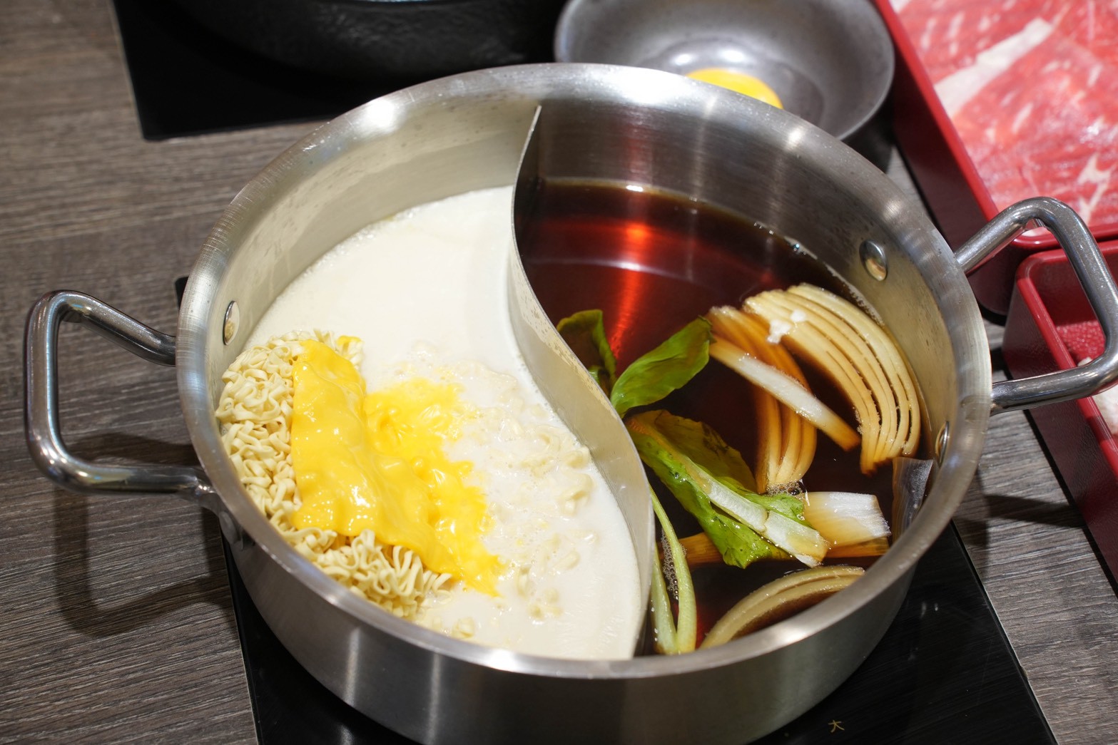 我們這次也選了一鍋日式壽喜燒+牛奶起司鍋,鹹甜濃郁、香氣四溢,一鍋兩吃很加分耶