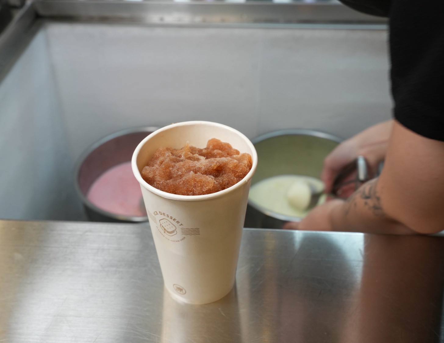 我點了 紅茶雪泥+牛奶冰淇淋,茶香跟奶香疊在一起,清爽消暑,另一杯是百香果雪泥+草莓冰淇淋,酸酸甜甜超開胃,透沁涼的滋味很適合夏天