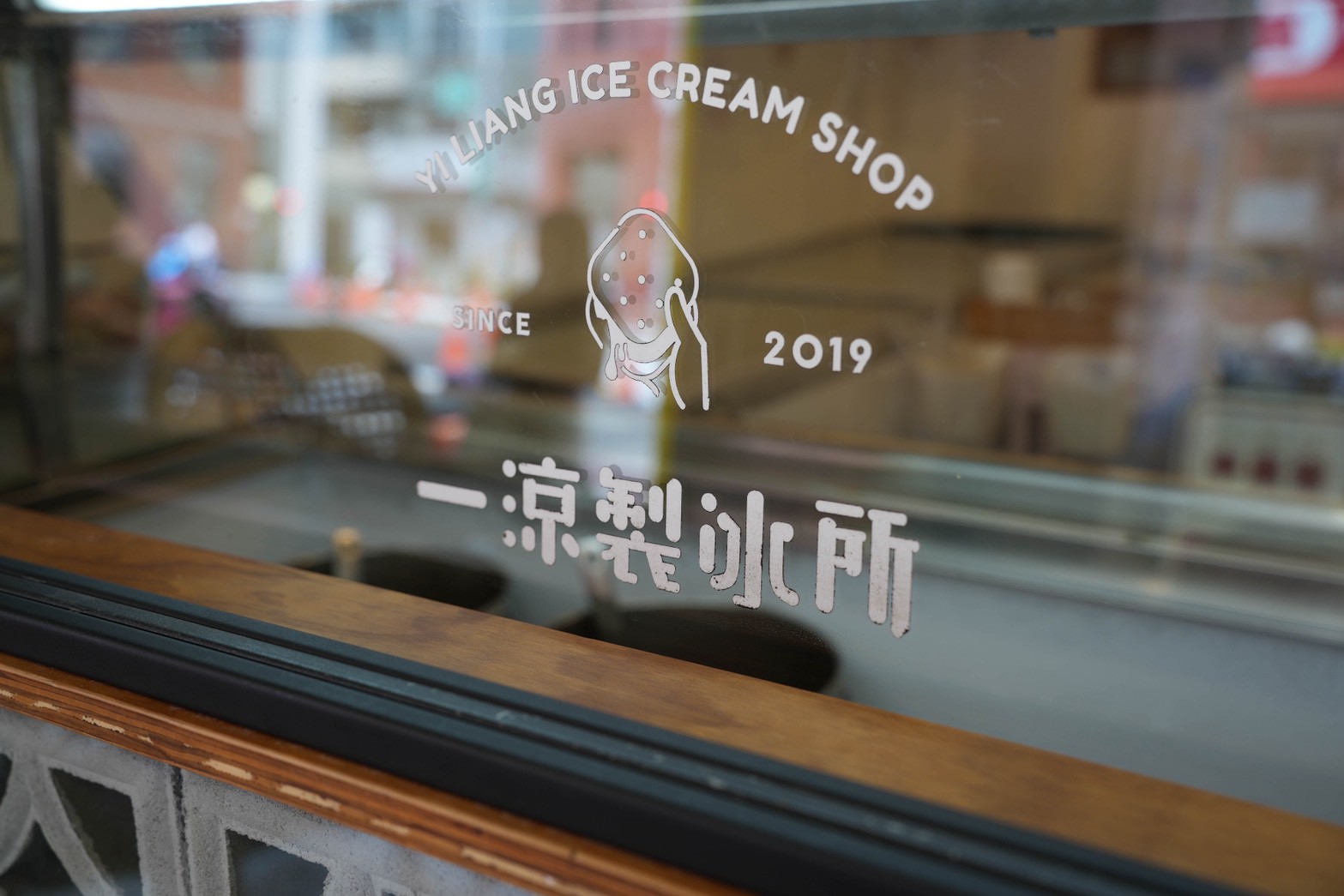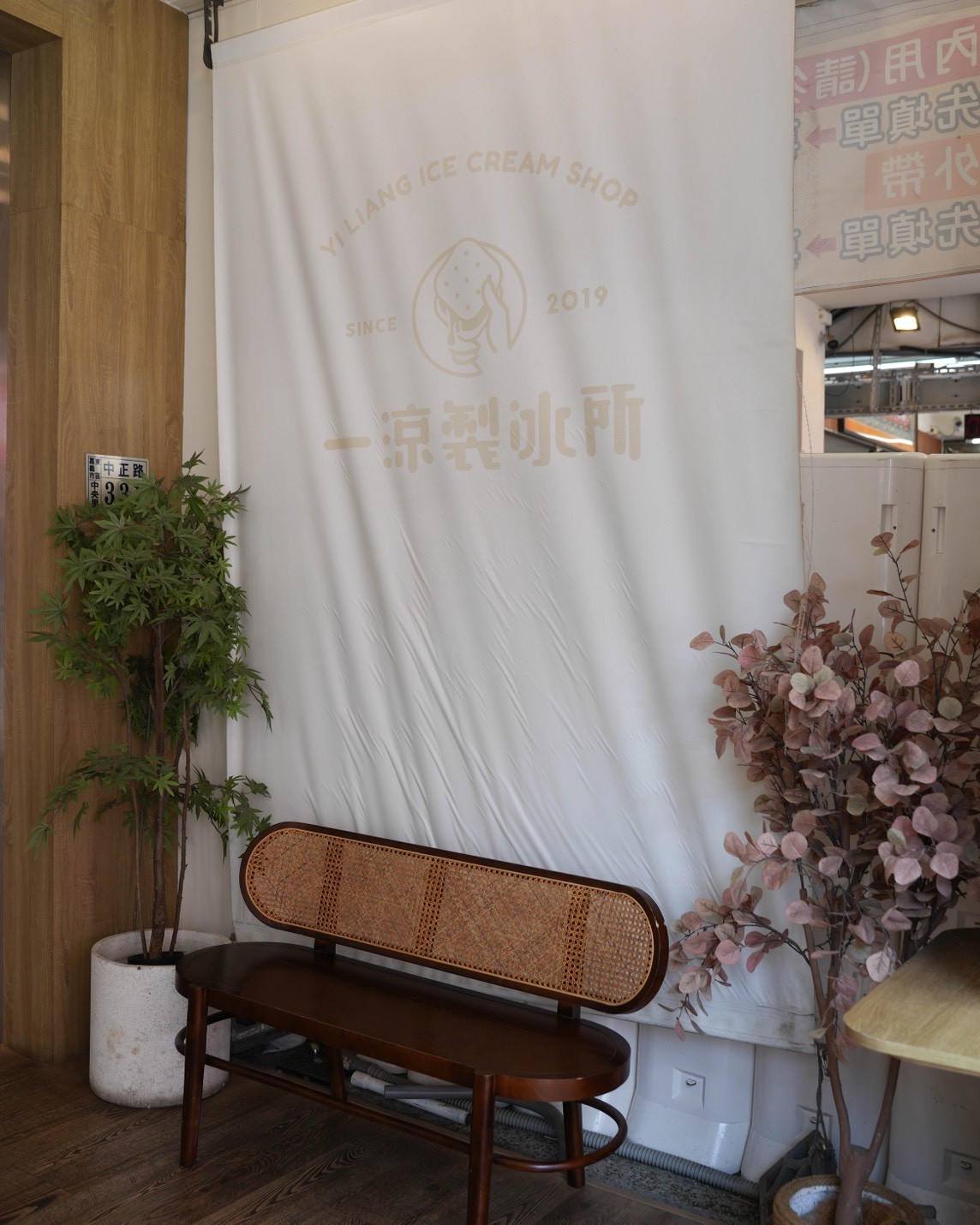 「一涼製冰所」的店面,整體裝潢走簡潔文青風,黑白配色的門面搭配木質感元素,低調中帶點溫馨。最吸睛的是左邊那個立體的冰餅造型招牌,很直白地告訴你這裡就是專賣冰餅的地方,超可愛也很好認!店內及門口皆擺了幾張木質桌椅,也適合坐下來慢慢吃冰。